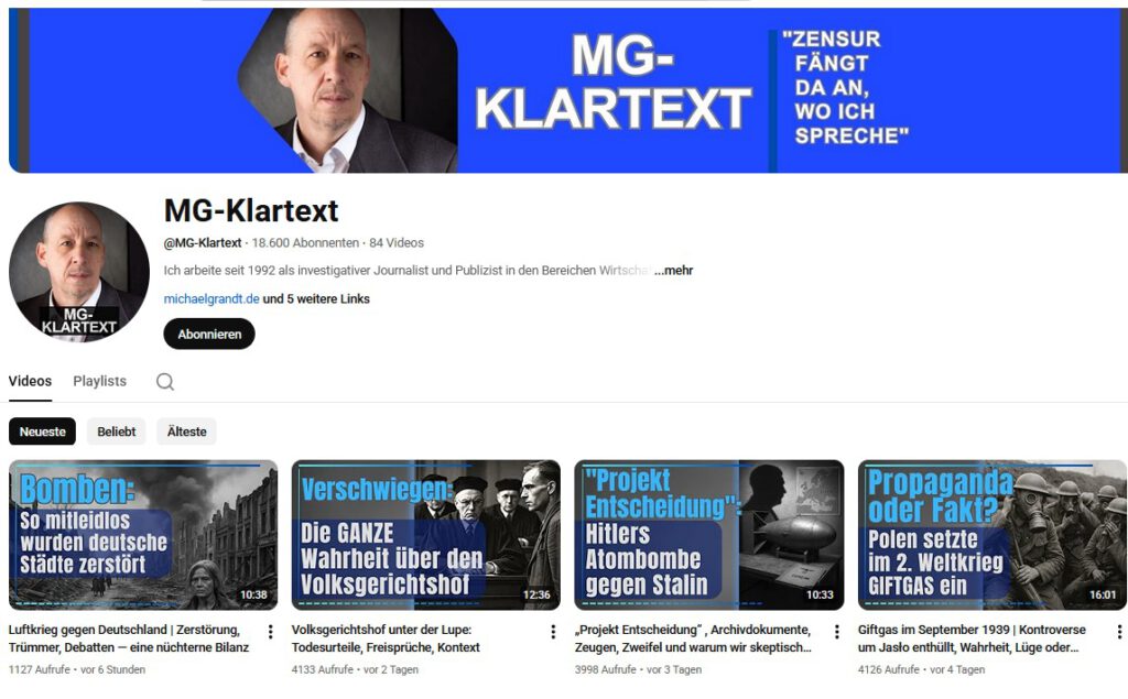 Abonnieren Sie meinen YouTube-Kanal mit brisanten Themen zur Aufdeckung der Geschichtslügen: