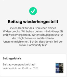 Aus diesem Grund kann mich TikTok getrost vergessen. Ich veröffentliche dort nur noch Inhalte, die das System und die links-rot-woken Zensoren bewusst provozieren.